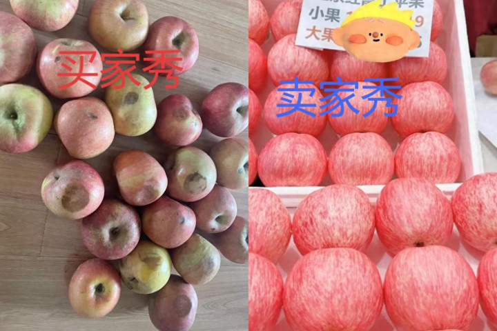 网友@浪迹山野说,我老婆就喜欢在网上买吃的,买一些零食也就算了,之前还买过苹果葡萄,收到货后和网店里的产品完全不一样,还坏了一小半,口感也很差,葡萄真的酸掉牙。